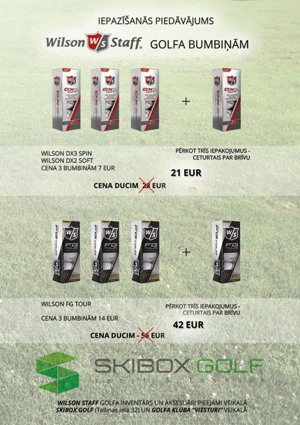 Lai labāk iepazītu "Wilson Staff" produkciju, veikals "Ski Box Golf" piedāvā speciālu akciju bumbiņām un 15% atlaidi pārējām "Wilson Staff" precēm.