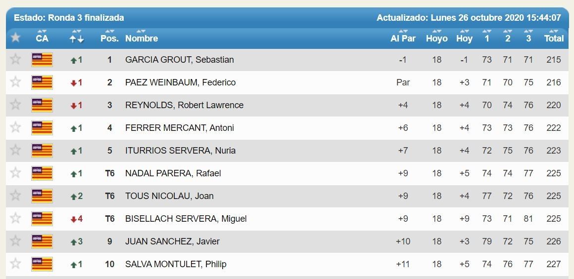 Turnīrā dzimtajā Maljorkā trīs raundu summā "Golf Maioris" laukumā Nadal nospēlēja ar +9 virs PAR (74-74-77). Nadal no uzvarētāja Sebastian Garcia Grout atpalika 10 sitienus.