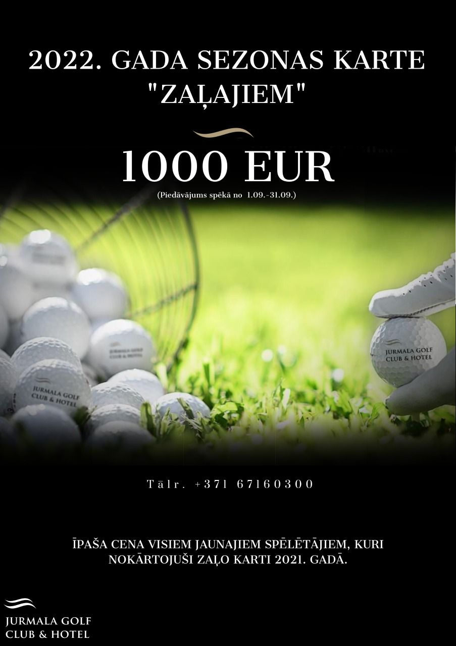 Septembrī īpašu piedāvājumu ir iespēja izmantot golferiem, kas Zaļo karti ieguvuši 2021.gadā, papildinot arvien plašāko Latvijas golfa saimi. "Jūrmala Golf Club & Hotel" piedāvā šosezon par oficiāliem golferiem kļuvušajiem spēlētājiem sezonas karti 2022.gadam iegādāties par 1000 eiro, iegūstot iespēju to izmantot arī pašreizējās sezonas atlikušajā daļā.