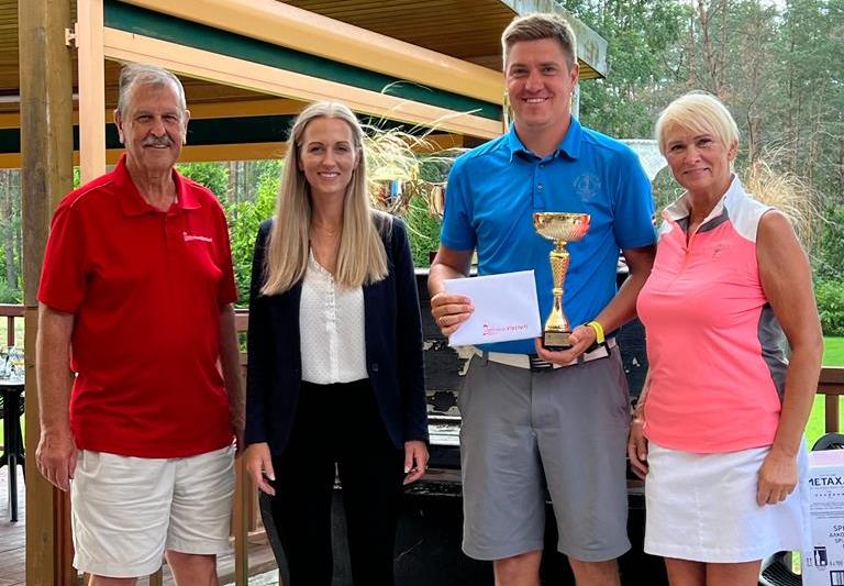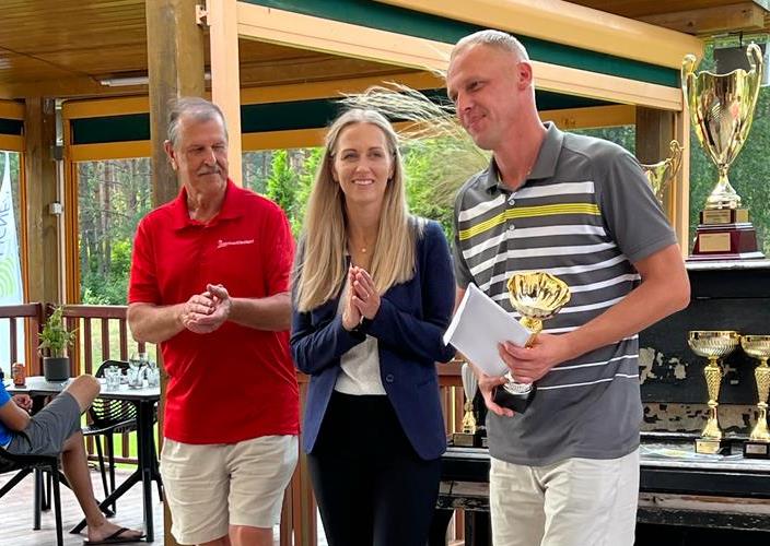 Daiga Puisīte balvu no meitas rokām saņēma par uzvaru sitienu spēlē, savukārt stableford ieskaitē dāmām labākā bija Sandra Lāce, par dažu handikapa desmitdaļu tiesu apsteidzot Gavrilovu, abām spēlētājām iekrājot 35 punktus.