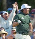 "US Masters" priekšpēdējā kārtā Phil Mickelson vienubrīd laukumā burtiski lidoja, un viņa kājas šķiet pat neskāra zemi. Iesitot divus īglus pēc kārtas, Mickelson sejas izteiksme bija tāda, it kā viņš būtu nejauši pamodies par 20 gadiem jaunāks. Ne velti golfa aprakstnieki jau sludina, ka "Augusta National" sestdien piedzīvoja savā vēsturē visizcilākā golfa pusstundu.
